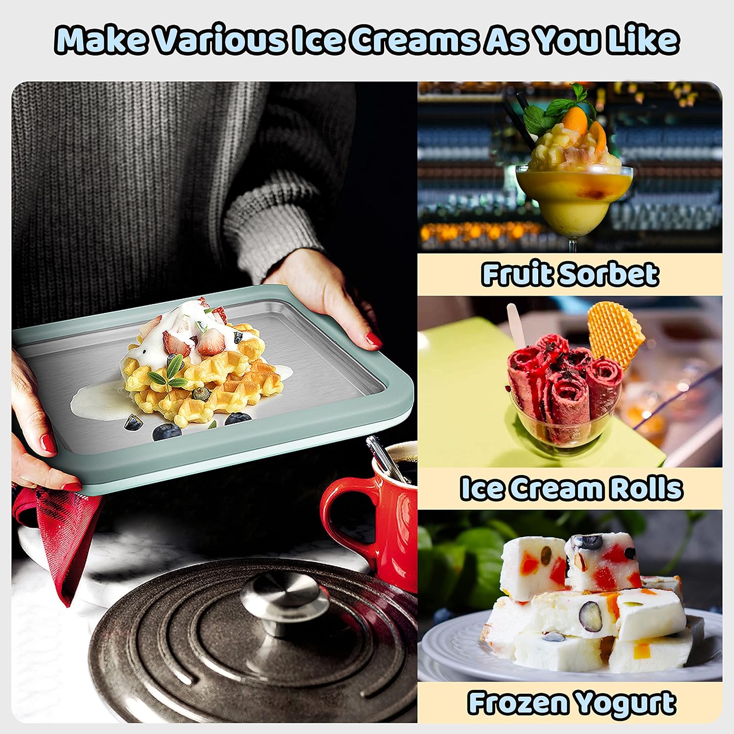 - [سهل الاستخدام] أخرج آلة صنع الآيس كريم من فريز زون، واسكب حوالي 140 مل من المكونات المختلطة في صينية سطح التجميد السريع، وانتظر 5 دقائق، ثم اغرف الآيس كريم واقلبه حتى يتشكل. استخدم المكشطة لصنع آيس كريم ملفوف جميل ولذيذ. أضف الفاكهة، والمكسرات، والرشات، أو رقائق الشوكولاتة؛ صينية الآيس كريم هذه مثالية للأطفال أو لقضاء أمسية ممتعة في المنزل.
